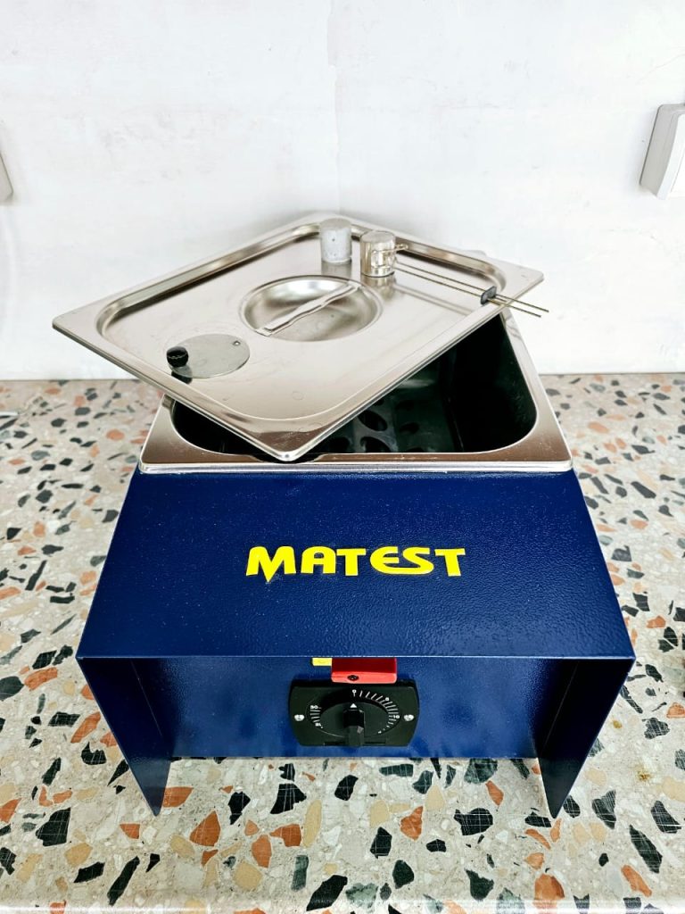 Ndërtuar me thellësi prej çeliku inoksidues për mbajtjen e formave brenda dhe kase prej çeliku të veshur me fletë metalike të vopsitur, ky pajisje mund të mbajë deri në 12 forma Le Chatelier (të porositura veçmas) në rafin e heqshëm, të furnizuar me banjën, duke arritur pikën e vrimëzimit në rreth 30 minuta.