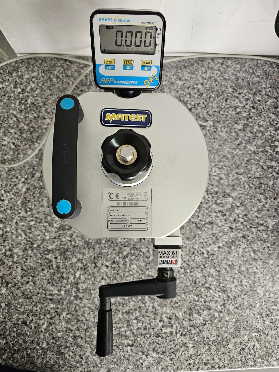 Paisja Pull off Tester, dinamometër i cili shërben për përcaktimin e forcës së lidhjes së dy shtresave të betonit ose forcë ngjitëse të veshjeve sipërfaqsore (suva çimentoje, suva muri etj)